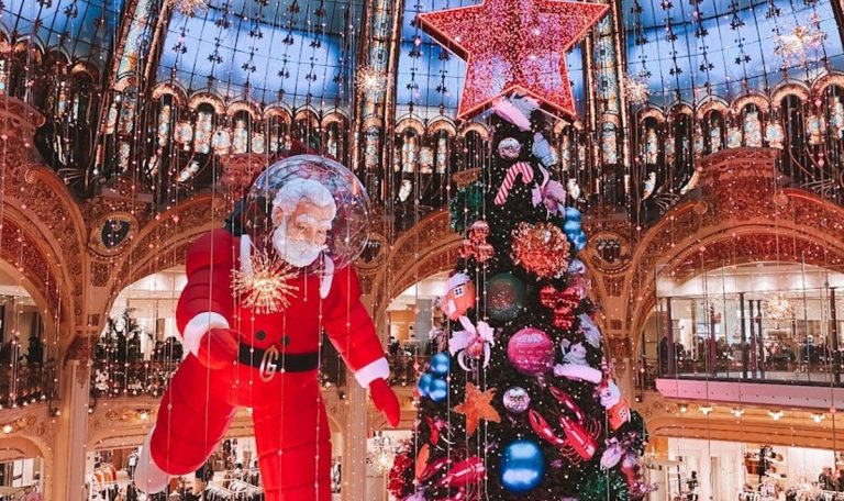 Boulevard Haussmann, le Printemps nous transporte outre-Atlantique avec son thème new-yorkais jusqu’au 4 janvier. Cette scénographie signée raconte l’histoire d’une joyeuse bande canine traversant l’Atlantique. Non loin, les Galeries Lafayette dévoilent leur sapin monumental sous la Coupole, habillé par l’illustratrice Jeanne Detallante dès le 12 novembre.
