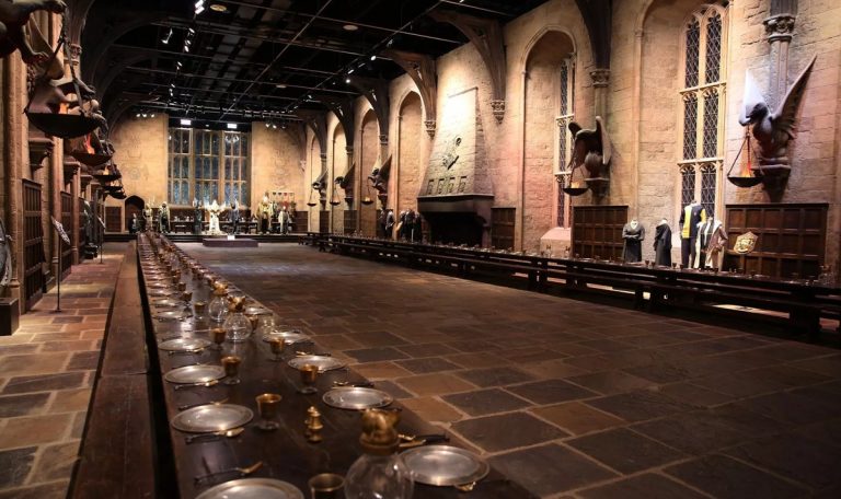La Grande Salle de Poudlard constitue sans conteste le clou du spectacle. Dès l’entrée, ce décor majestueux saisit le visiteur par son ampleur et sa fidélité aux descriptions littéraires. Les longues tables, les costumes d’époque accrochés aux murs, les centaines de bougies suspendues : chaque élément contribue à recréer l’atmosphère unique du pensionnat de sorcellerie.